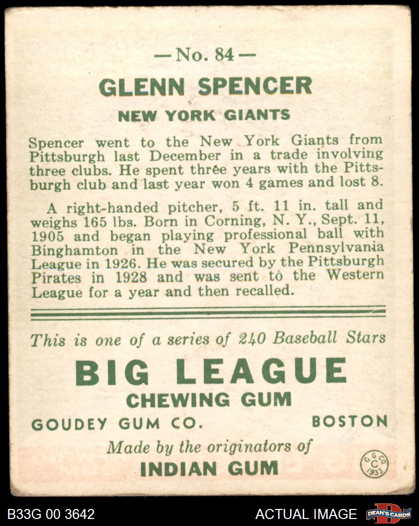 1933 Goudey Baseball Cards (R319) (921 available)1933 Goudey Giants (312 available)