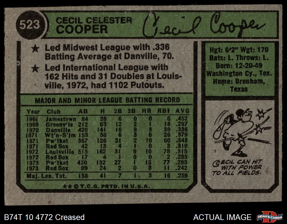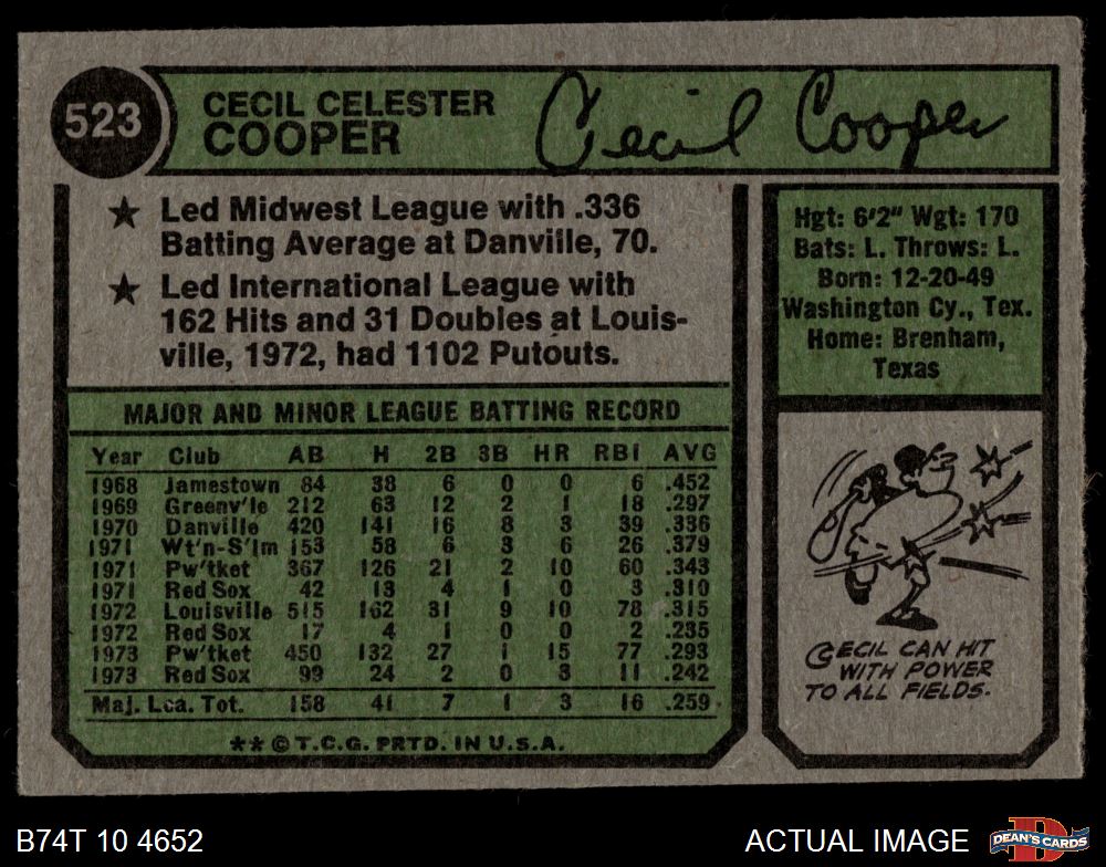 1974 Topps #523 Cecil Cooper 3 - VG