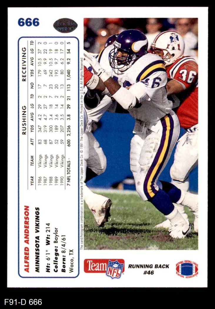 1991 Upper Deck #666 Alfred Anderson 8 - NM/MT