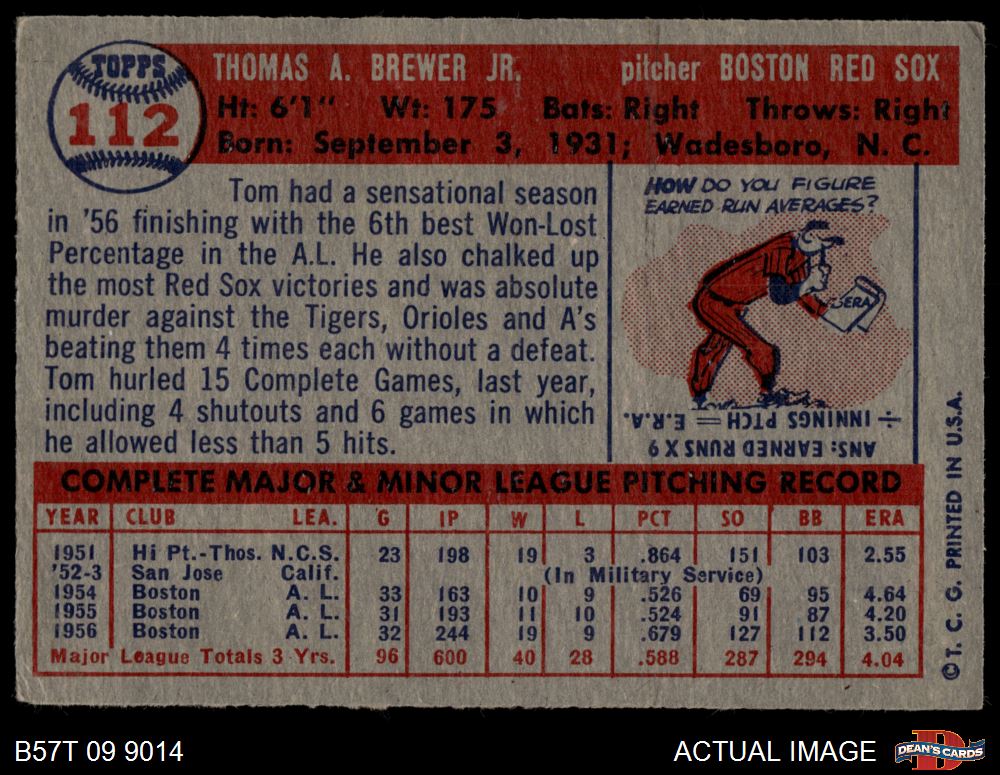 1957 Topps #112 Tom Brewer 2 - GOOD