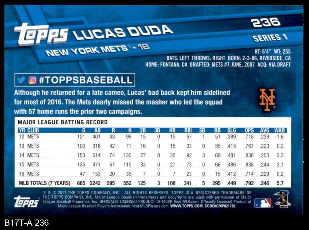 2017 Topps Baseball Cards (2,554 available)2017 Topps Mets (151 available)