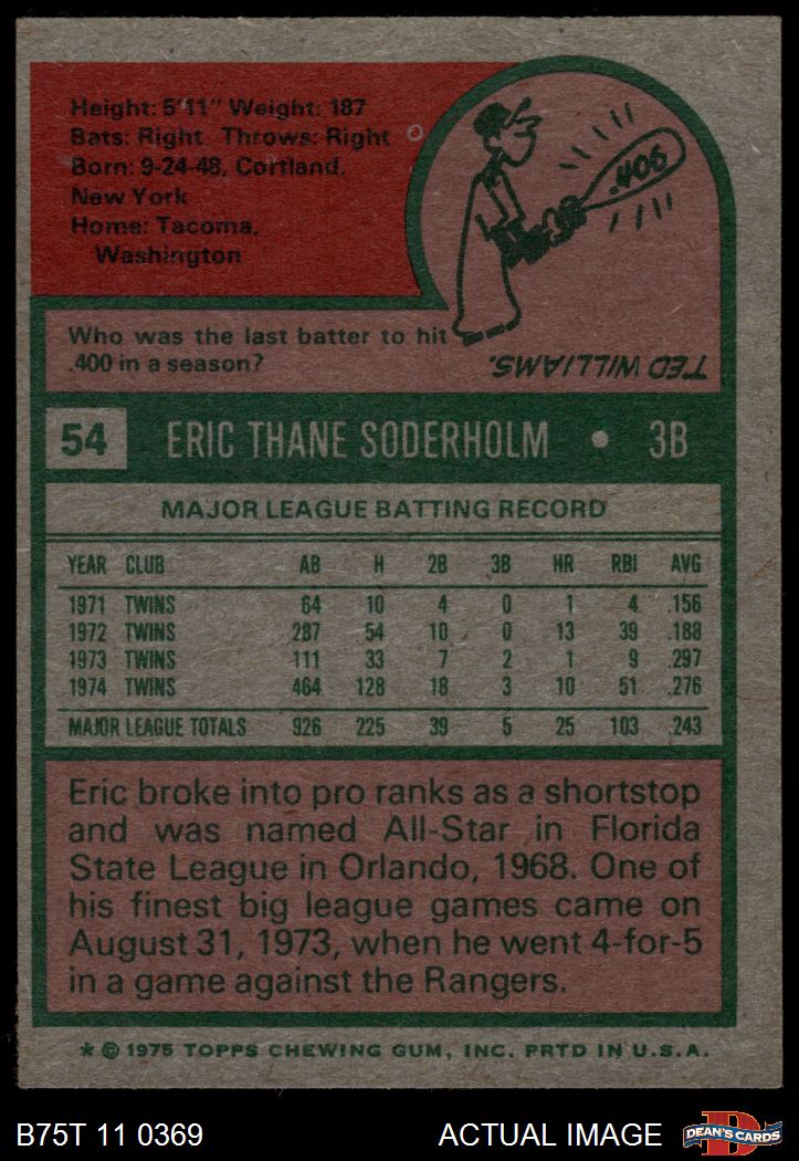 1975 Topps #54 Eric Soderholm