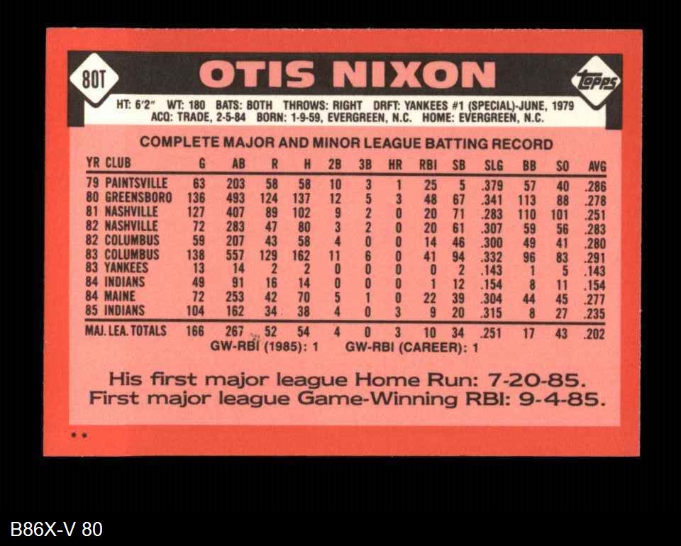1986 Topps Traded #80 T Otis Nixon