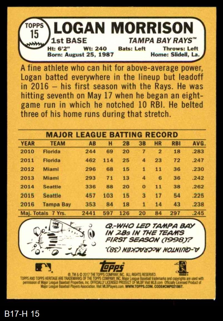 2017 Topps Heritage #15 Logan Morrison 8 - NM/MT