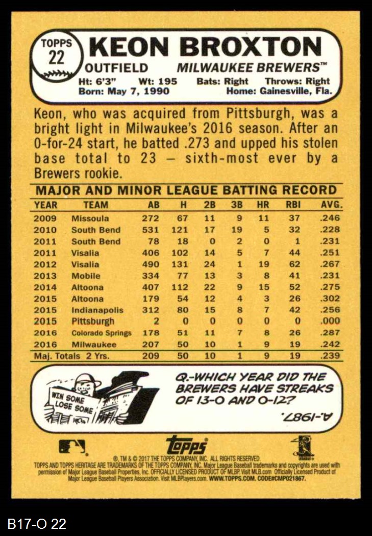 2017 Topps Heritage Baseball Cards (1,836 available)2017 Topps Heritage Brewers (77 available)