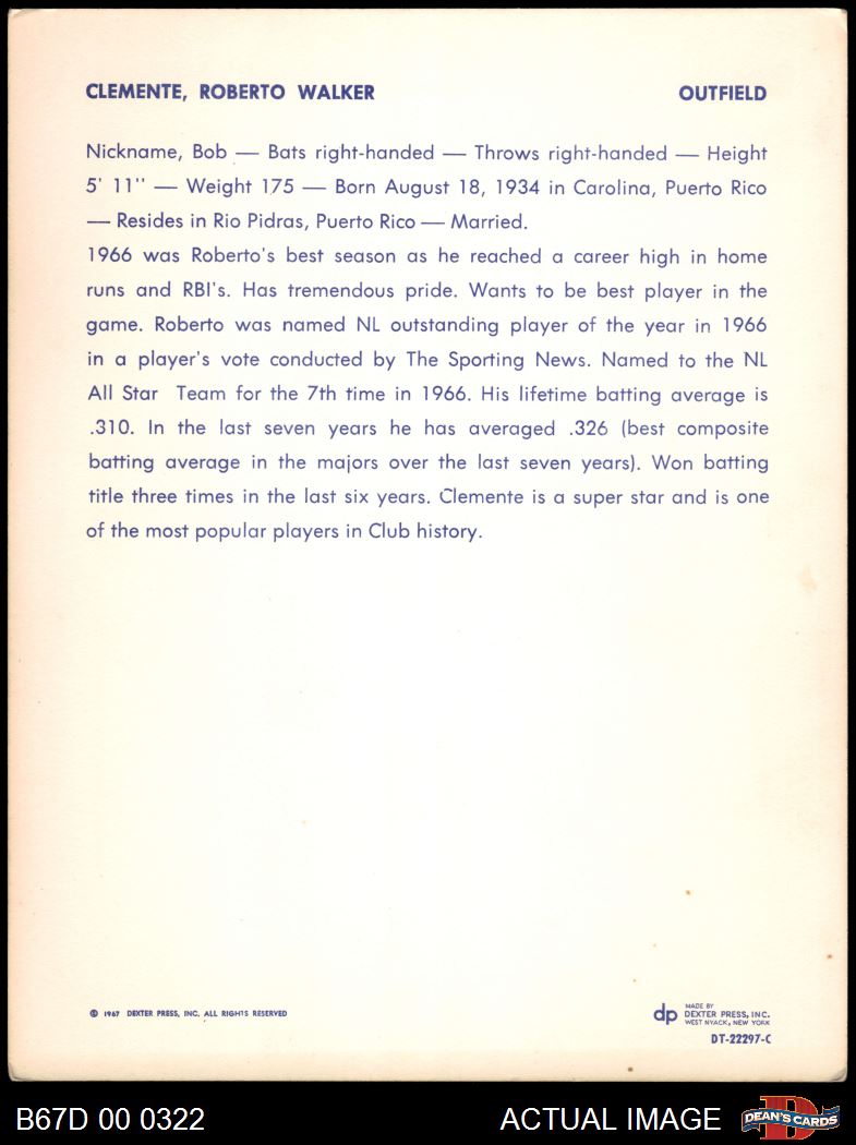 1967 Dexter Press Premiums Roberto Clemente