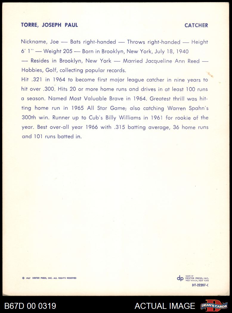 1967 Dexter Press Premiums Joe Torre 4 - VG/EX