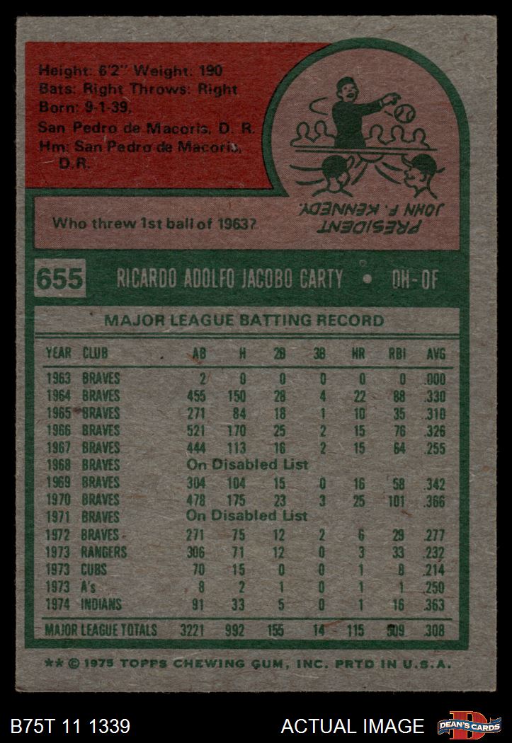 1975 Topps #655 Rico Carty 4 - VG/EX