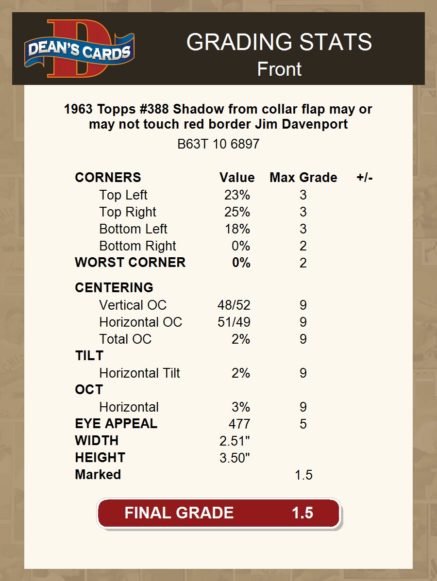 Dean's Cards has examined this item and it is our opinion that this item is genuine and authentic. We have come to this conclusion based on our experience and involvement with sports memorabilia.