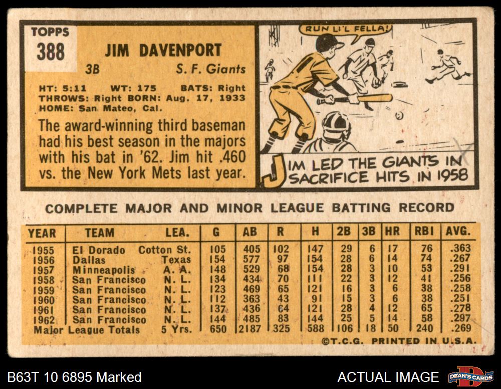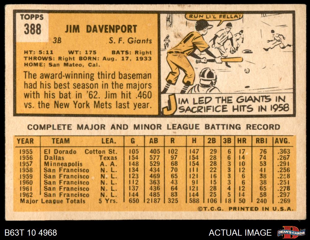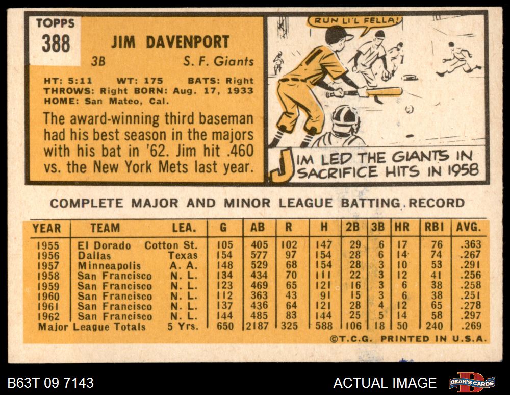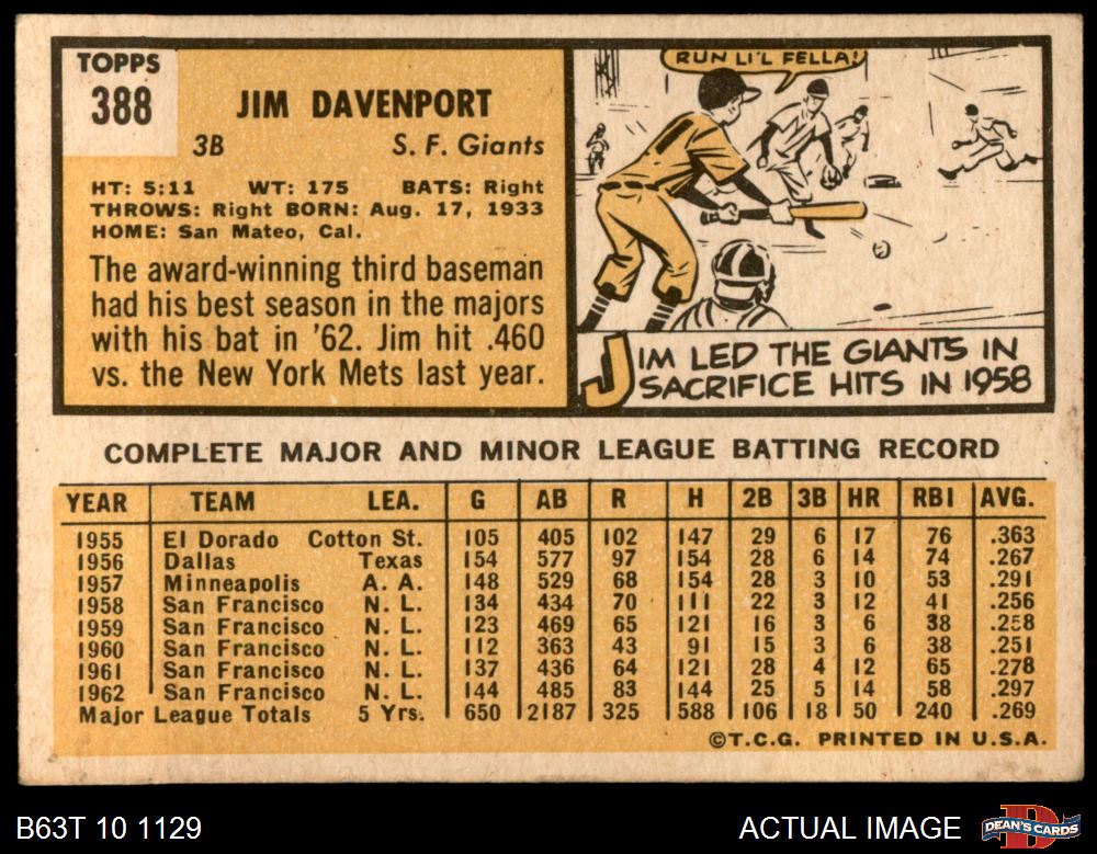 1963 Topps #388 Jim Davenport