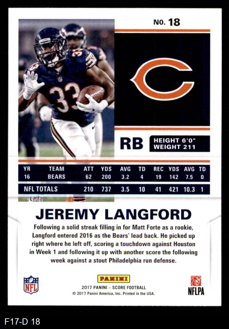 2017 Score #18 Jeremy Langford 8 - NM/MT