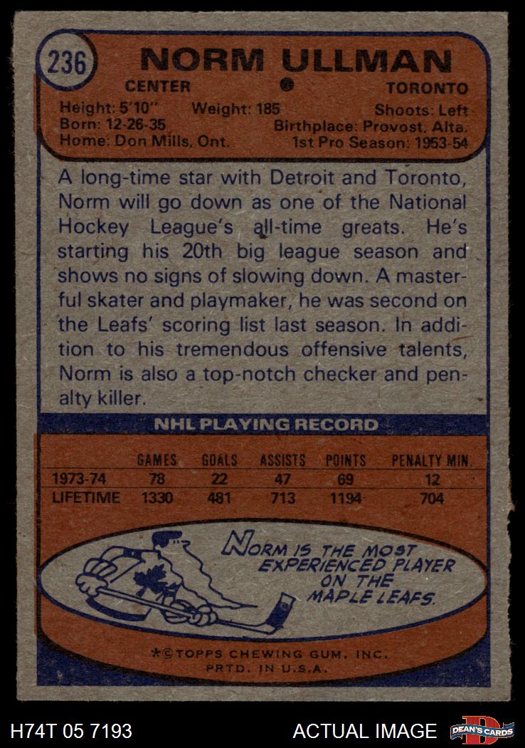 1974 Topps #236 Norm Ullman 4 - VG/EX
