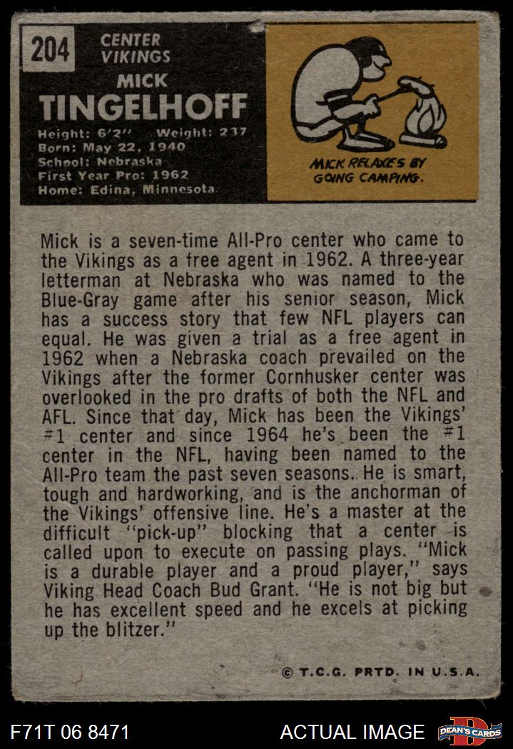 1971 Topps #204 Mick Tingelhoff 1 - POOR