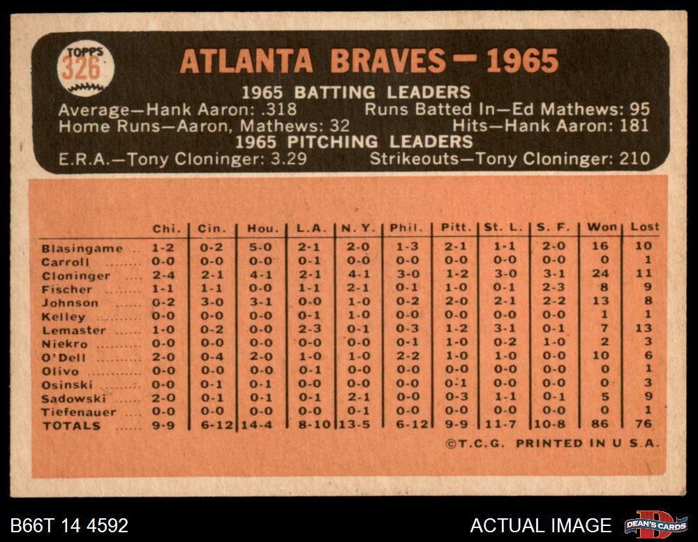 1966 Topps #326 DOT Braves Team