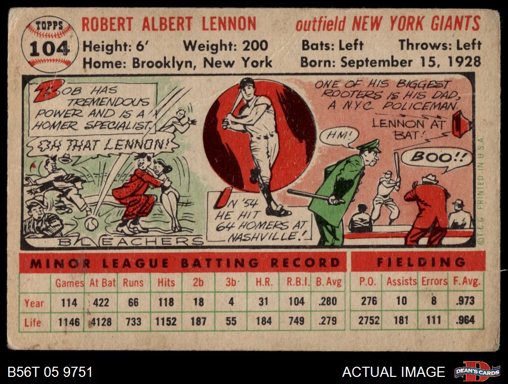 1956 Topps #104 WHT Bob Lennon 1.5 - FAIR