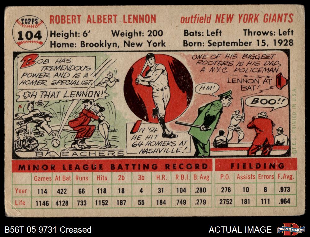 1956 Topps #104 WHT Bob Lennon 2 - GOOD