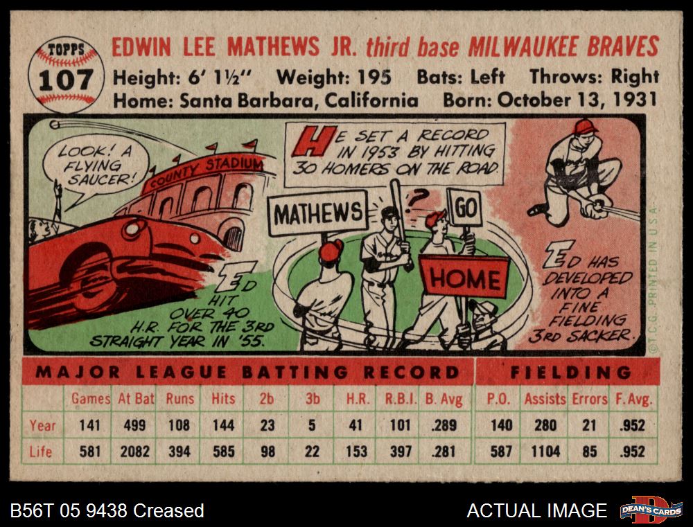 1956 Topps #107 WHT Eddie Mathews