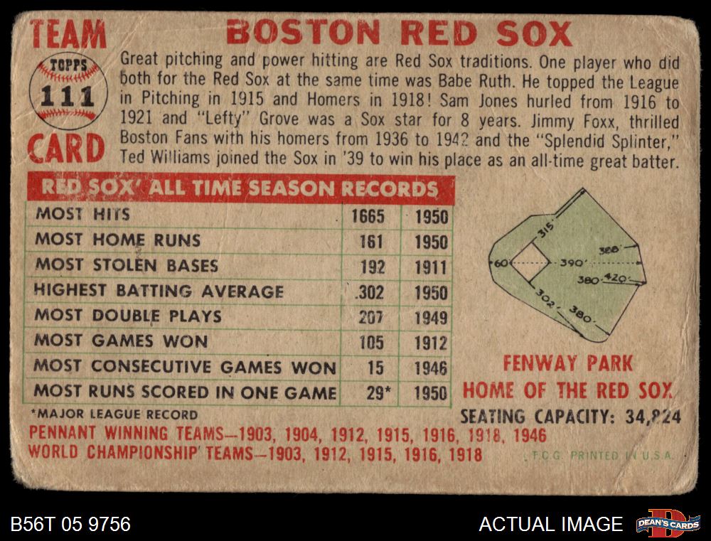 1956 Topps #111 WHT Red Sox Team AUTHENTIC