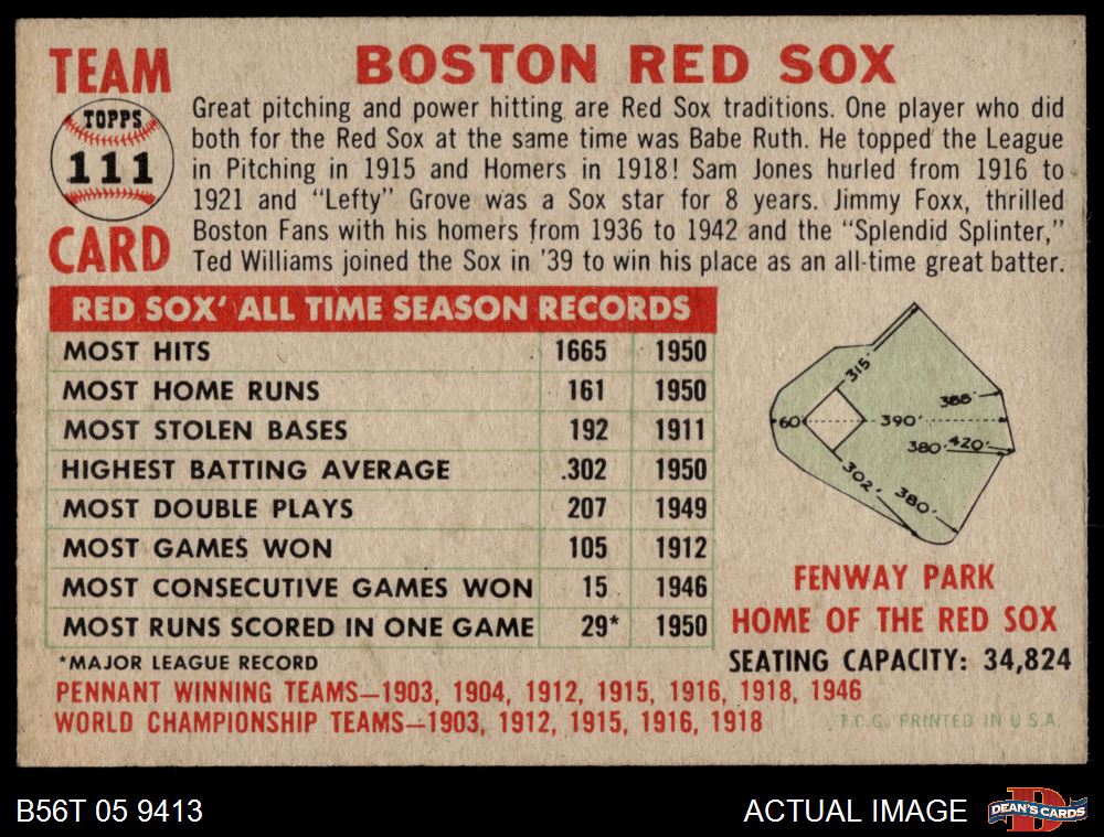 1956 Topps #111 WHT Red Sox Team 5 - EX