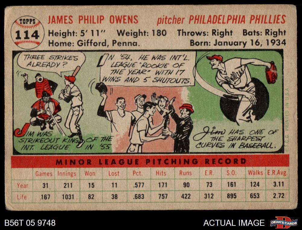 1956 Topps #114 WHT Jim Owens