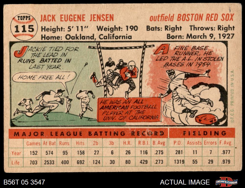 1956 Topps #115 WHT Jackie Jensen 2 - GOOD