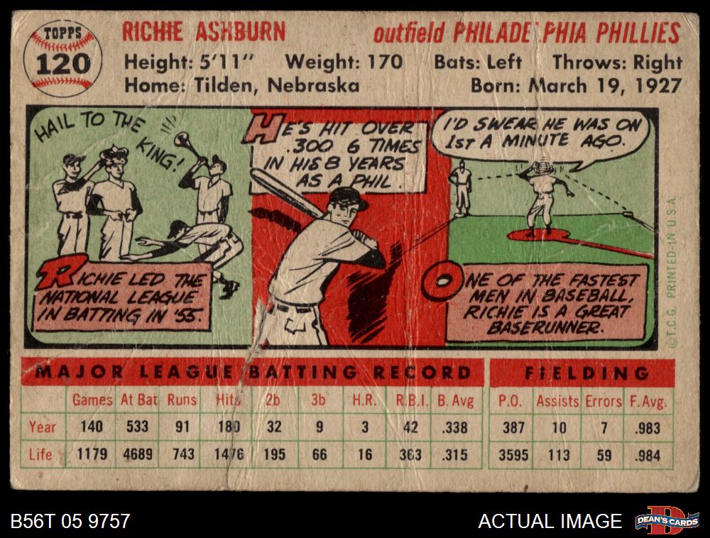 1956 Topps #120 WHT Richie Ashburn AUTHENTIC