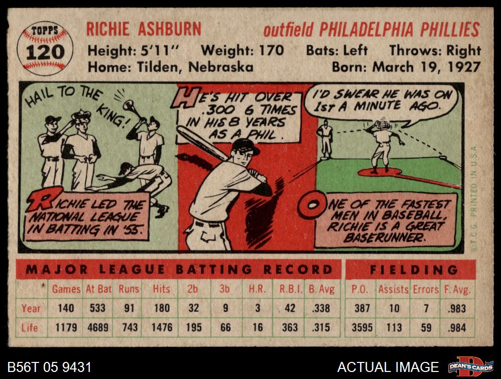 1956 Topps #120 WHT Richie Ashburn 3 - VG