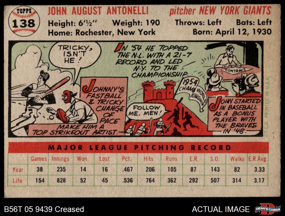 1956 Topps #138 WHT Johnny Antonelli 1 - POOR