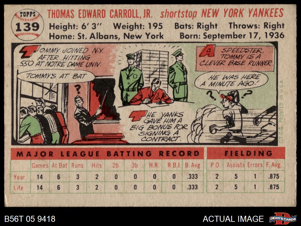 1956 Topps #139 WHT Tom Carroll 3 - VG