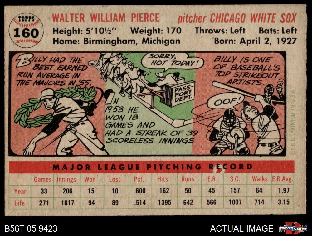 1956 Topps #160 WHT Bill Pierce 2 - GOOD
