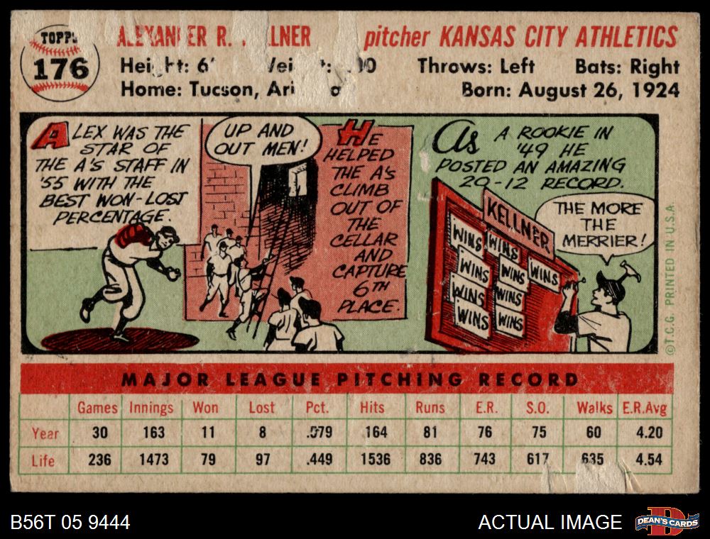 1956 Topps #176 WHT Alex Kellner 2 - GOOD