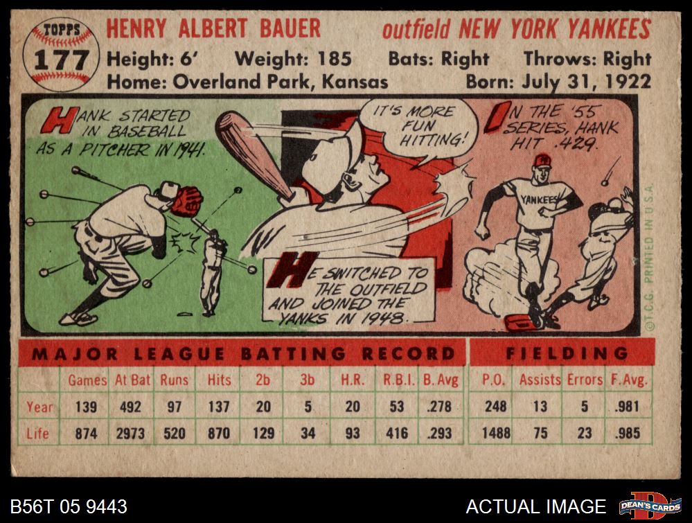 1956 Topps #177 WHT Hank Bauer