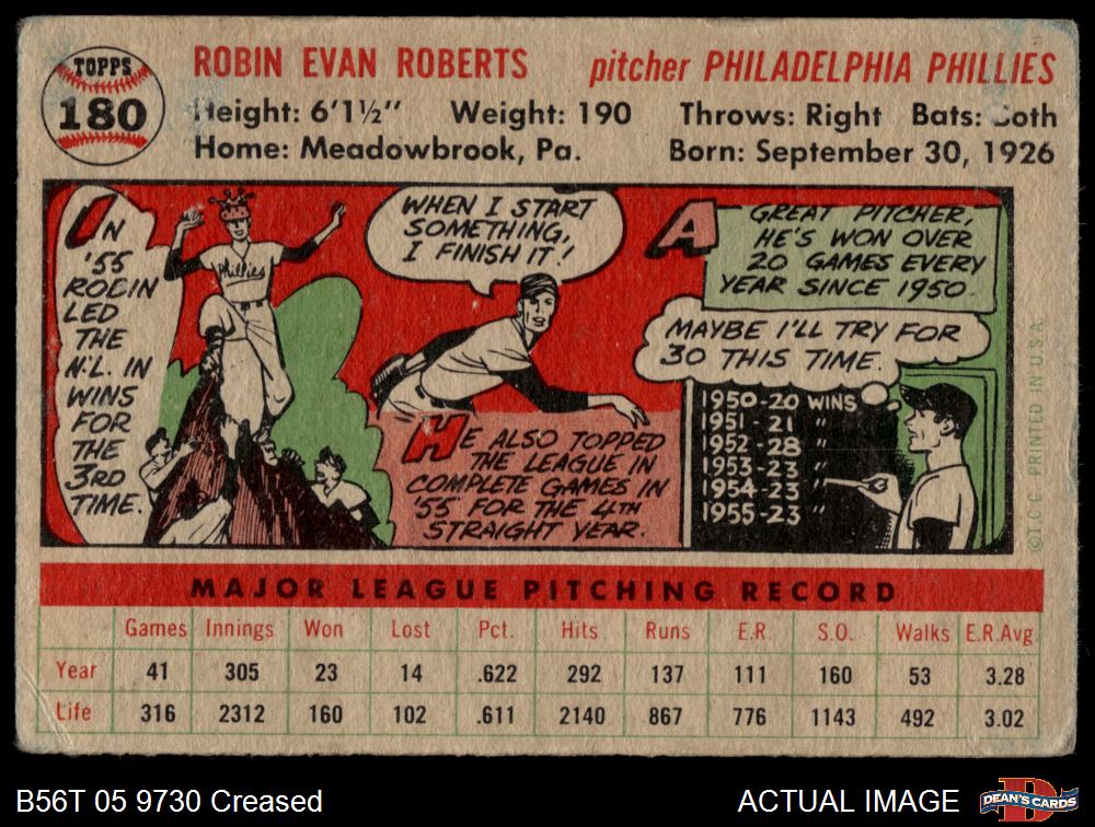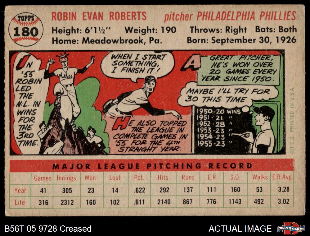 1956 Topps #180 WHT Robin Roberts 2 - GOOD