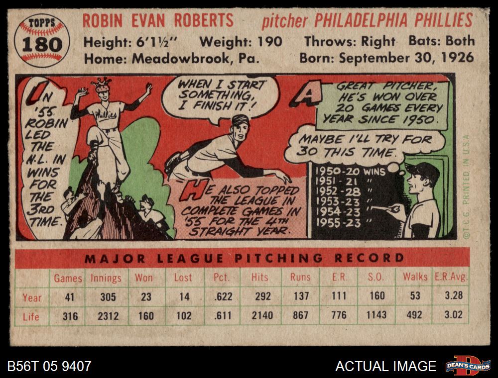 1956 Topps #180 WHT Robin Roberts 4 - VG/EX