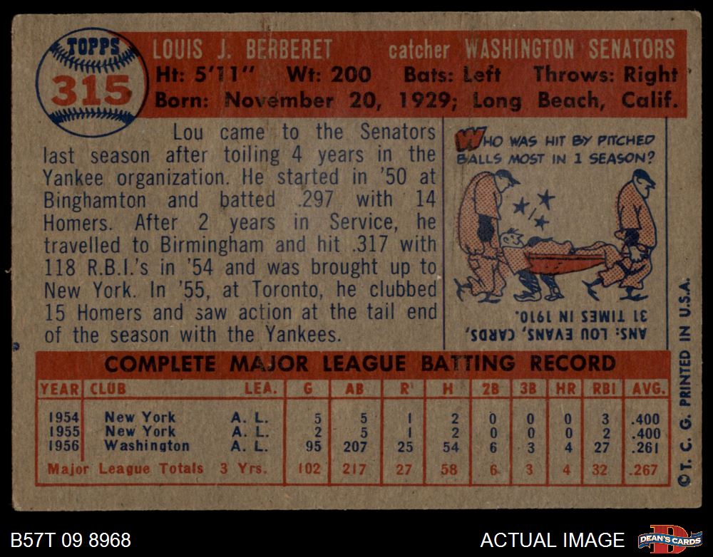 1957 Topps #315 Lou Berberet 1.5 - FAIR