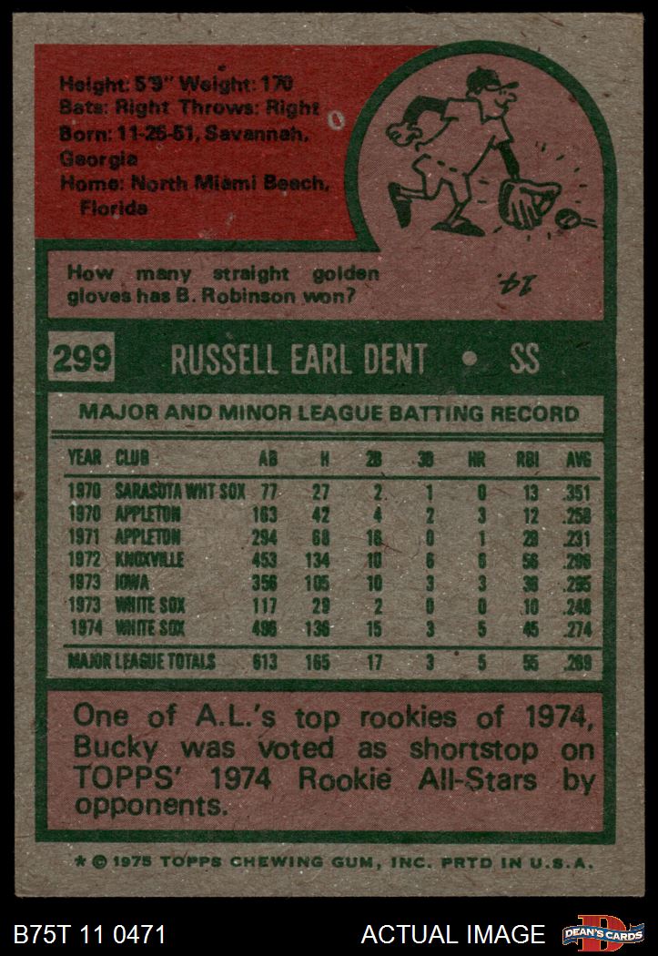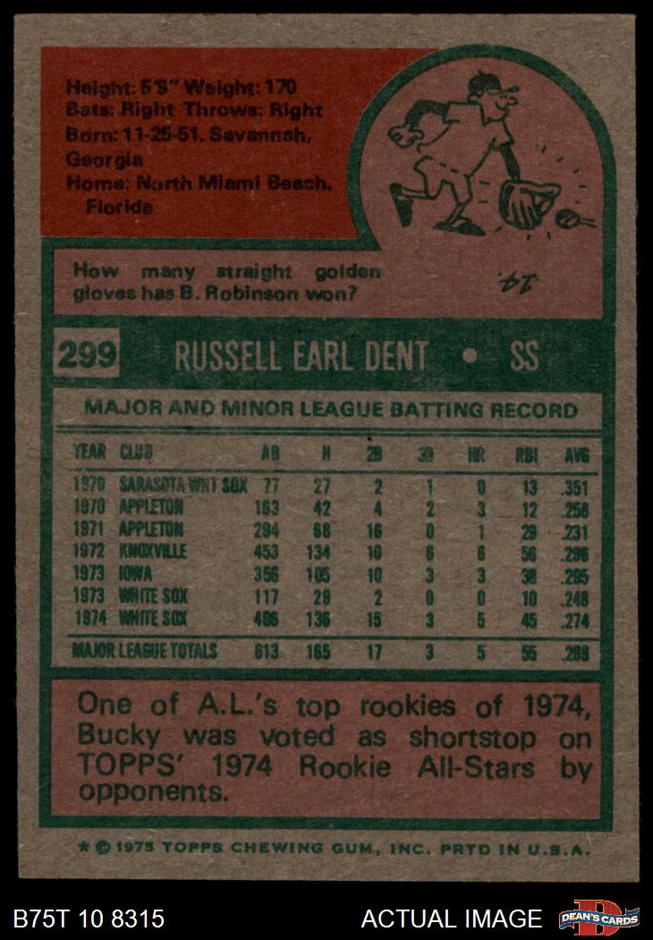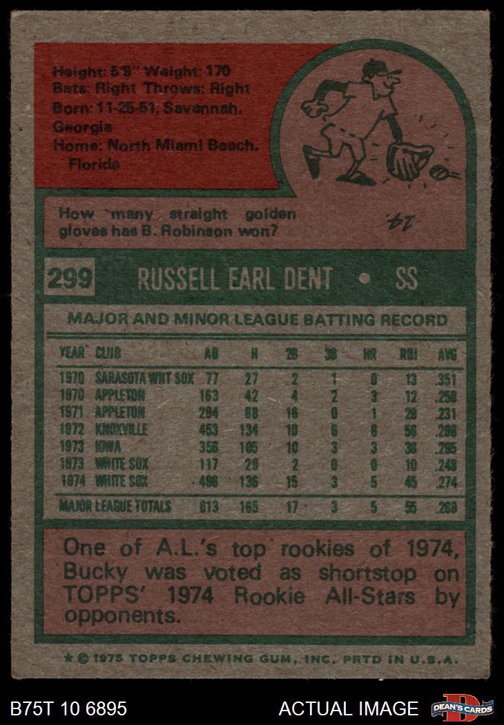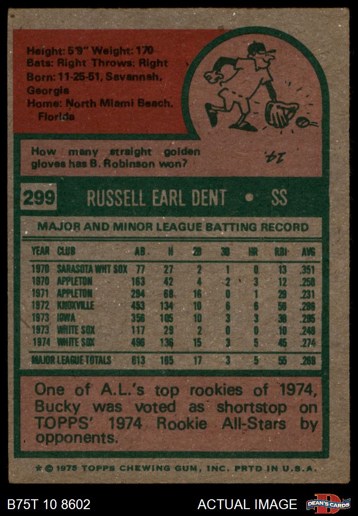 1975 Topps #299 Bucky Dent 4 - VG/EX