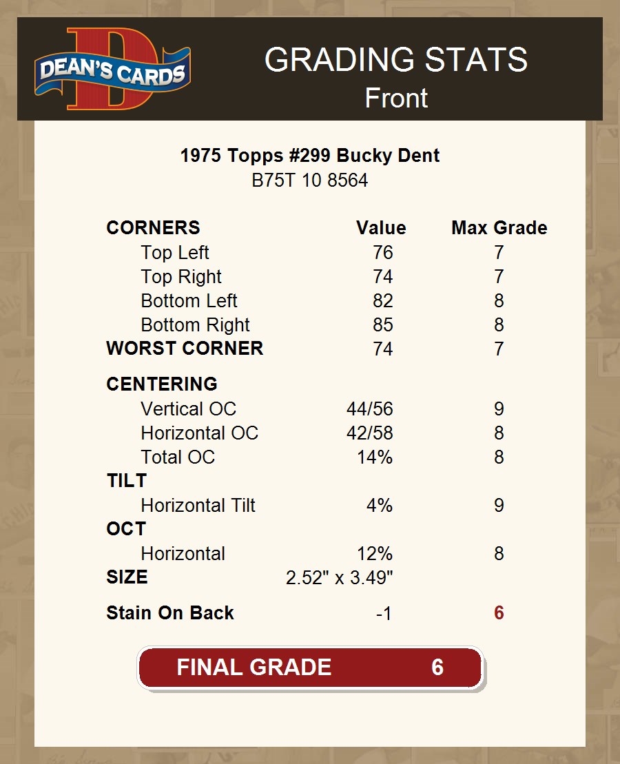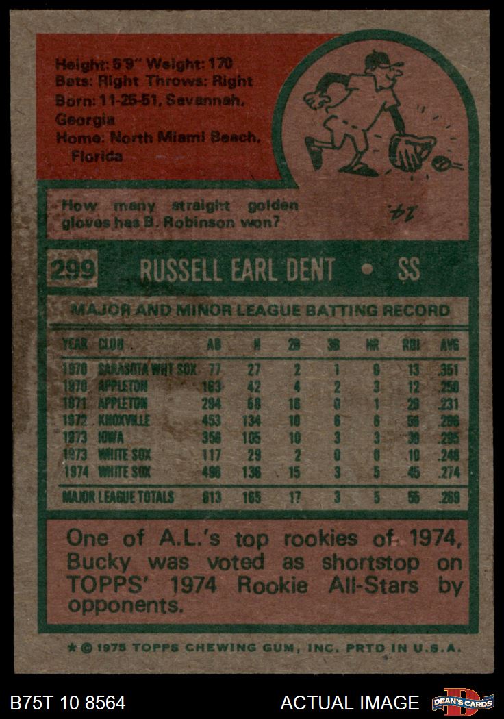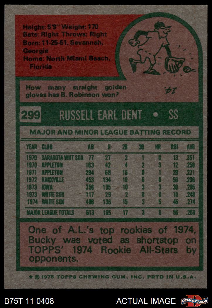 1975 Topps #299 Bucky Dent 6 - EX/MT