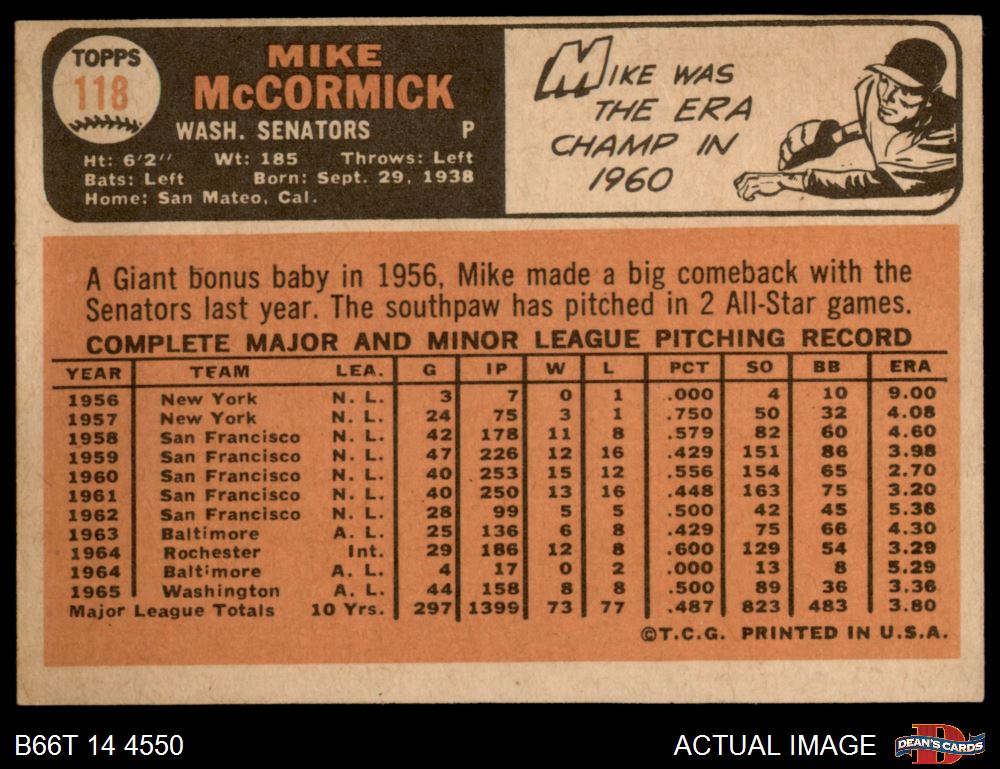 1966 Topps Baseball Cards (17,031 available)1966 Topps Senators (1,190 available)