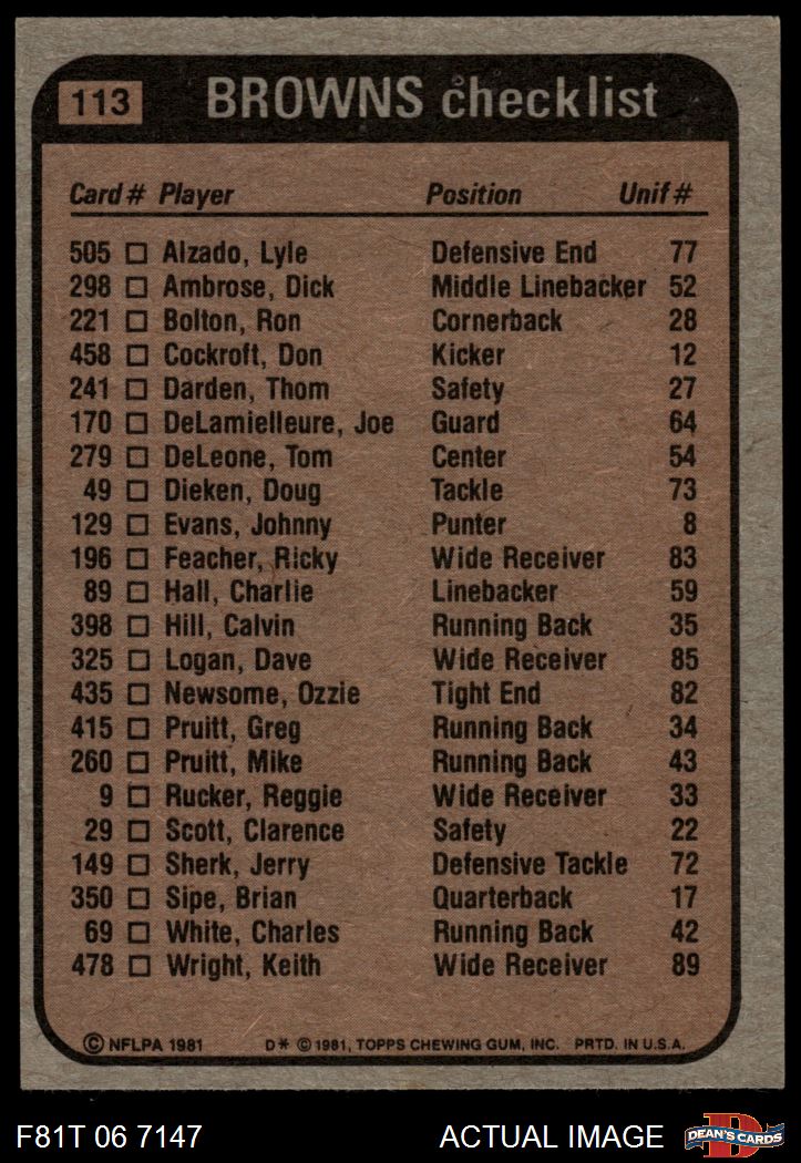 1981 Topps Football Cards (6,346 available)1981 Topps Browns-FB (268 available)