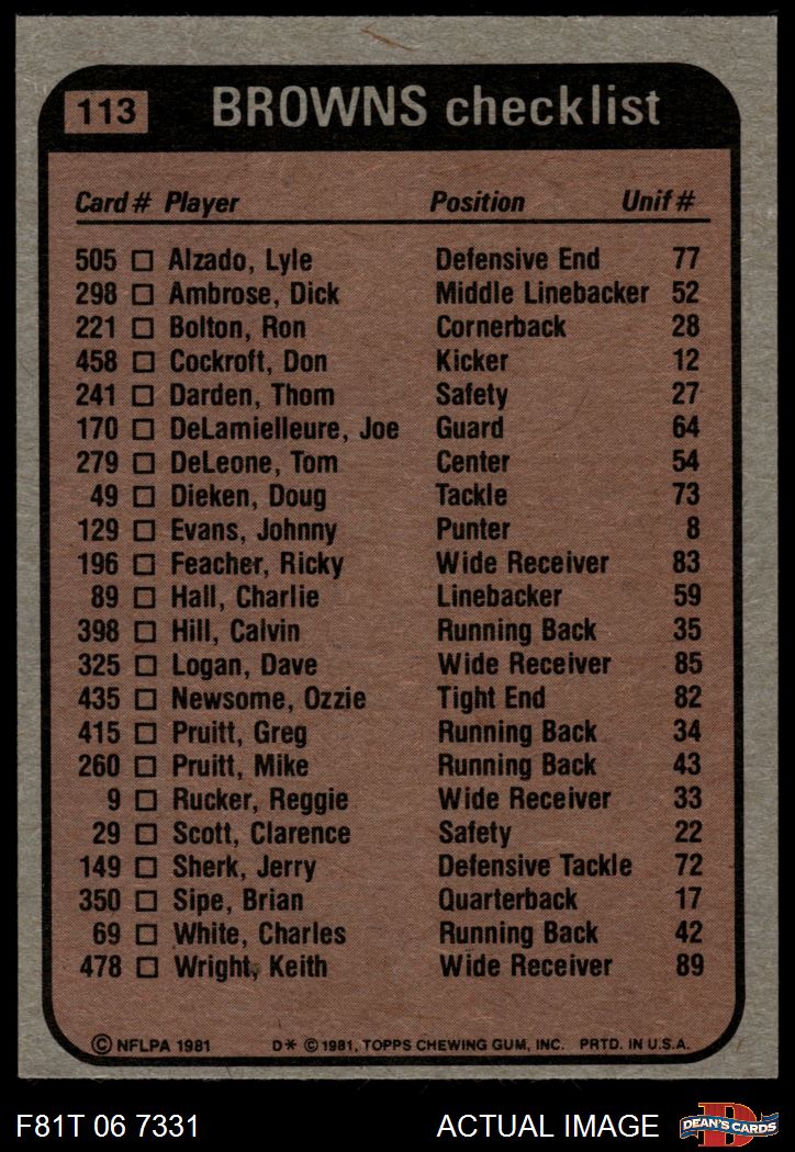 1981 Topps #113 - Mike Pruitt / Dave Logan / Ron Bolton / Lyle Alzado Browns Leaders & Checklist 5 - EX