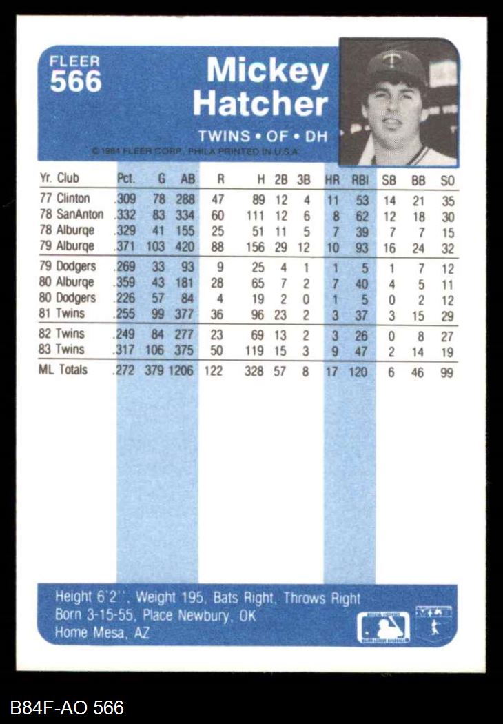 1984 Fleer #566 Mickey Hatcher 8 - NM/MT
