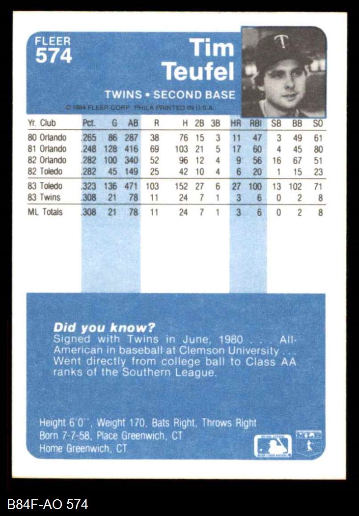 1984 Fleer Baseball Cards (1,895 available)1984 Fleer Twins (82 available)