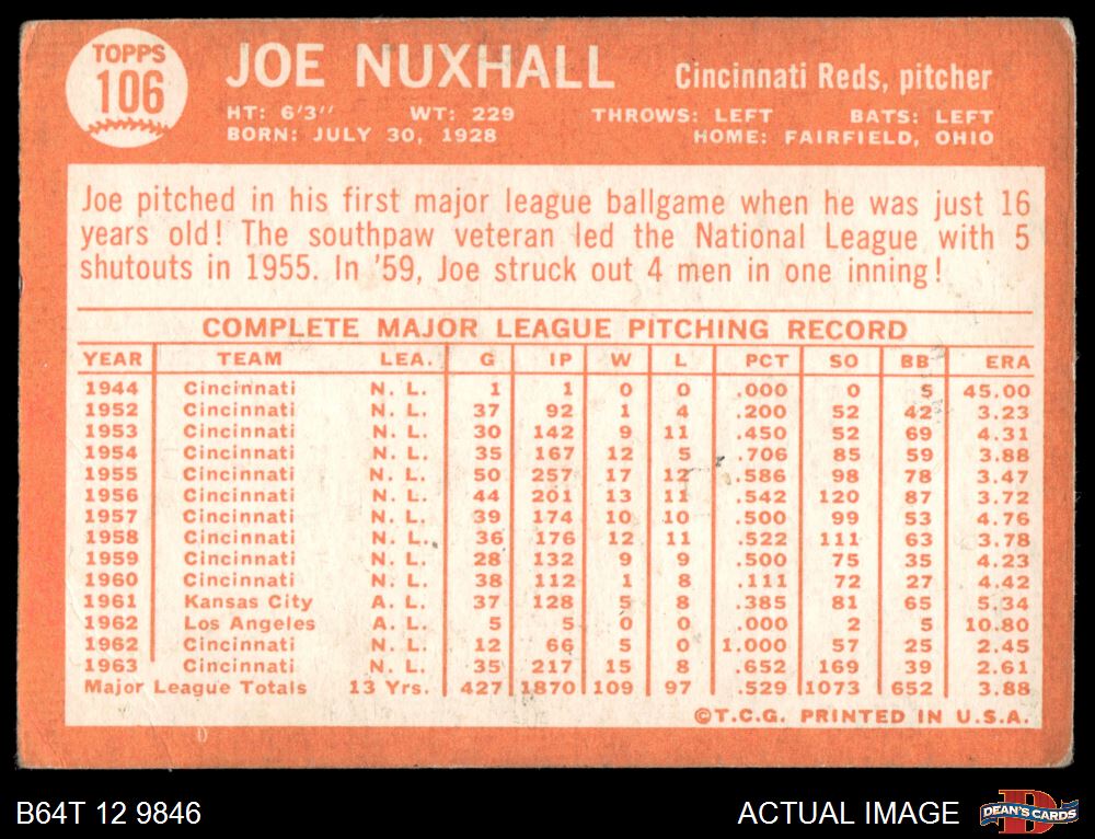 1964 Topps #106 Joe Nuxhall 2 - GOOD
