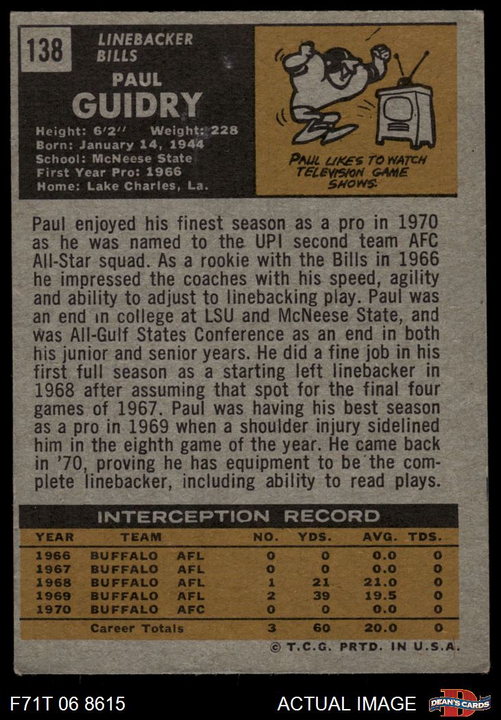 1971 Topps #138 Paul Guidry 4 - VG/EX