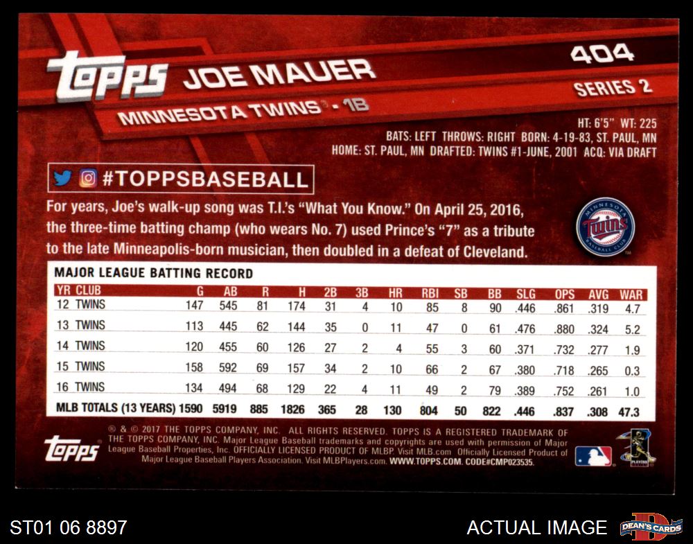 2017 Topps #404 A Joe Mauer 8 - NM/MT