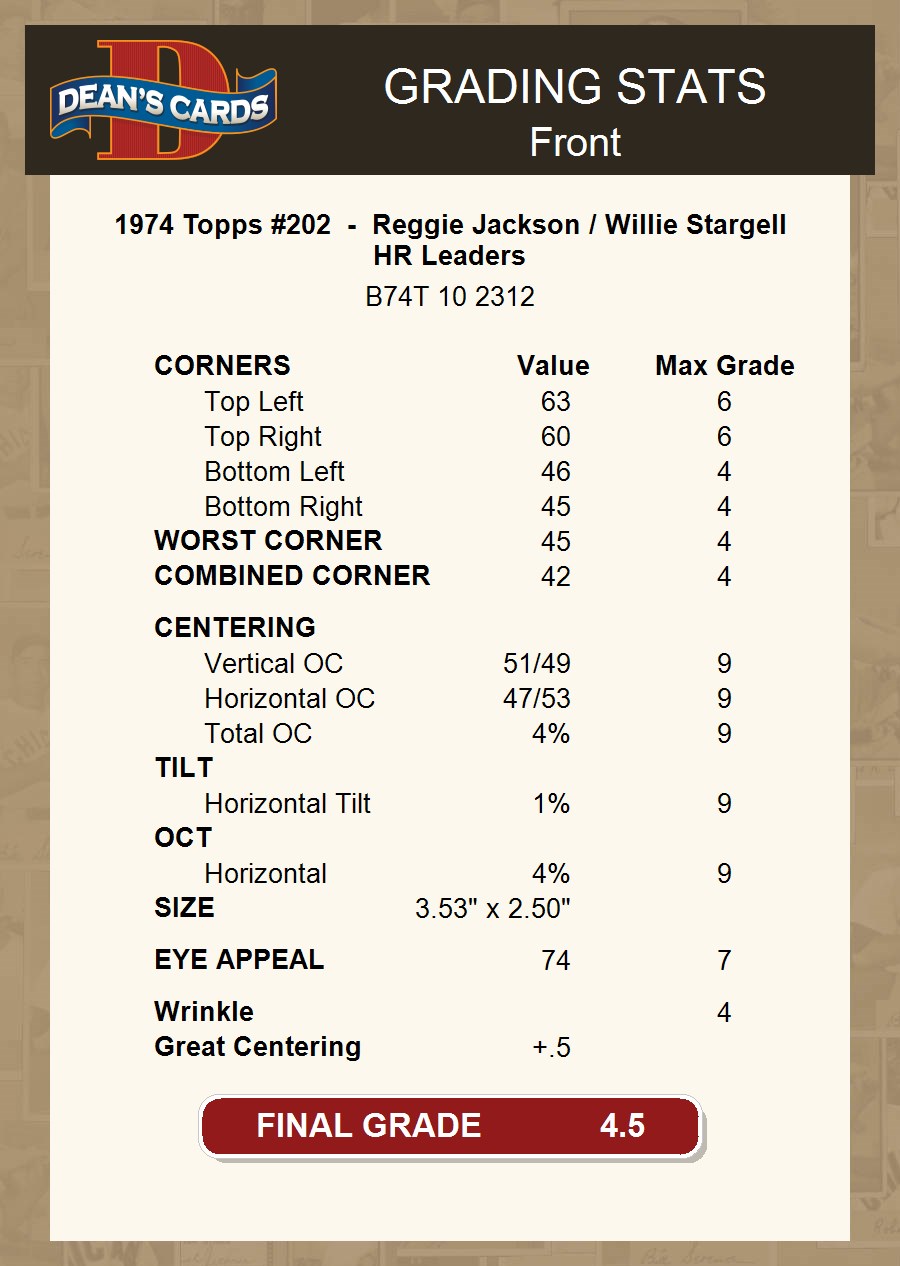 1974 1974 #202 - Reggie Jackson / Willie Stargell HR Leaders 4.5 - VG/EX+