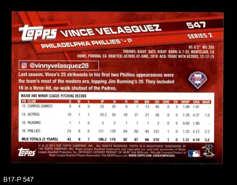 2017 Topps #547 Vince Velasquez 8 - NM/MT