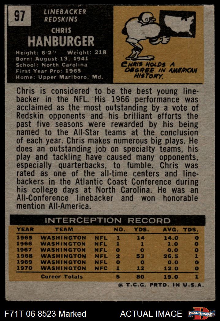 1971 Topps #97 Chris Hanburger Front Thumbnail