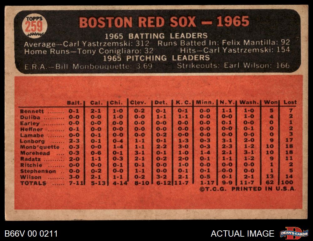 1966 Topps Venezuelan #259 Red Sox Team 4 - VG/EX