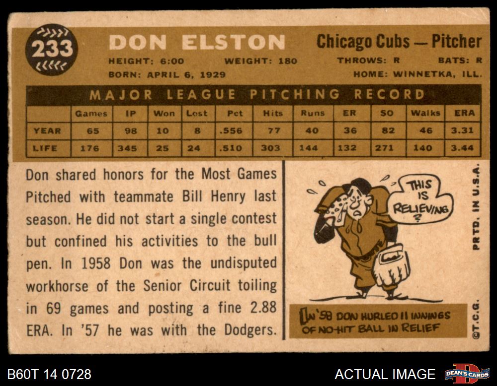 1960 Topps #233 Don Elston 2 - GOOD